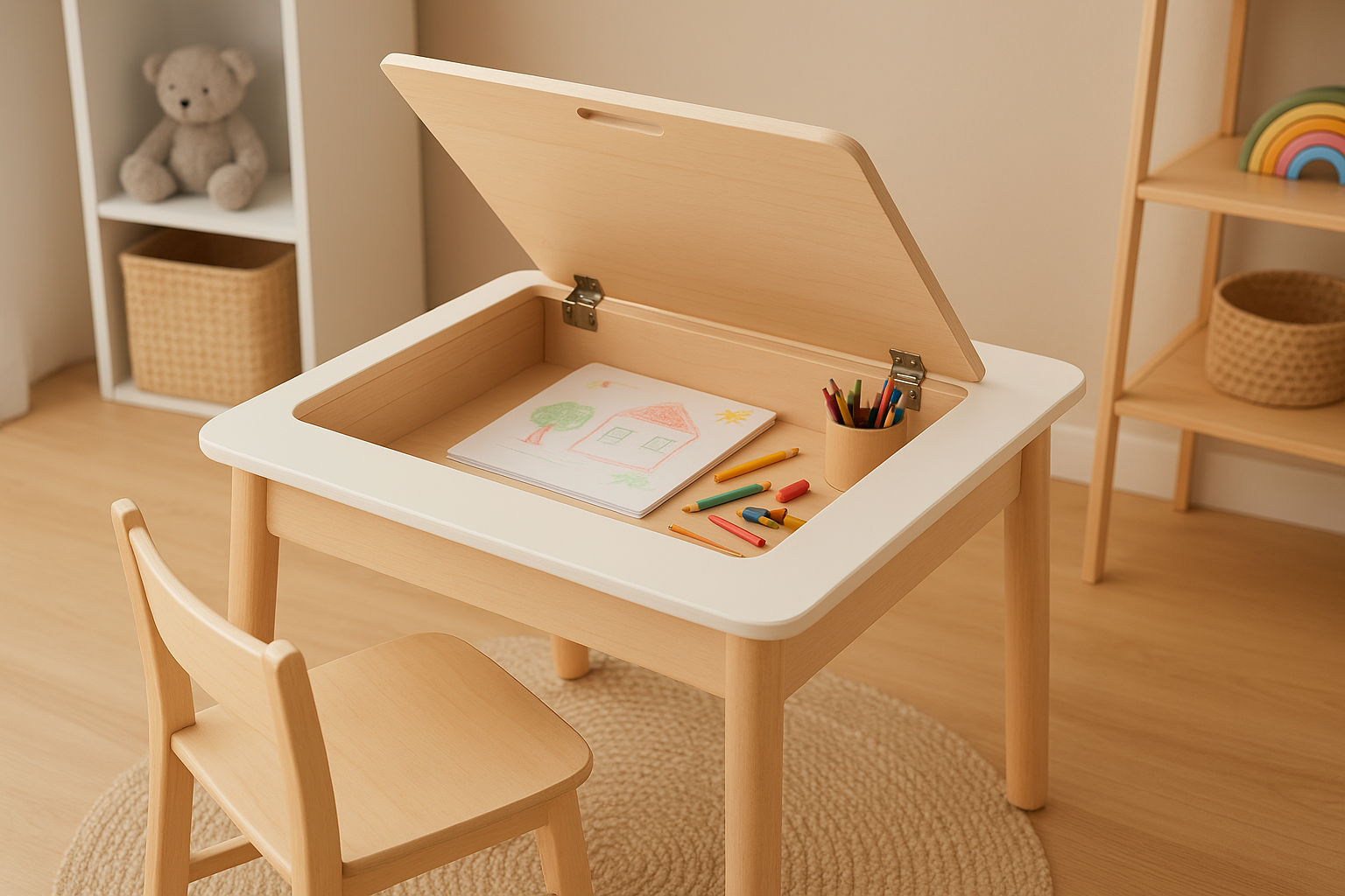 Stolik z otwieranym blatem dla dziecka to jeden z najbardziej praktycznych mebli do pokoju dziecięcego. Łączy w[…]