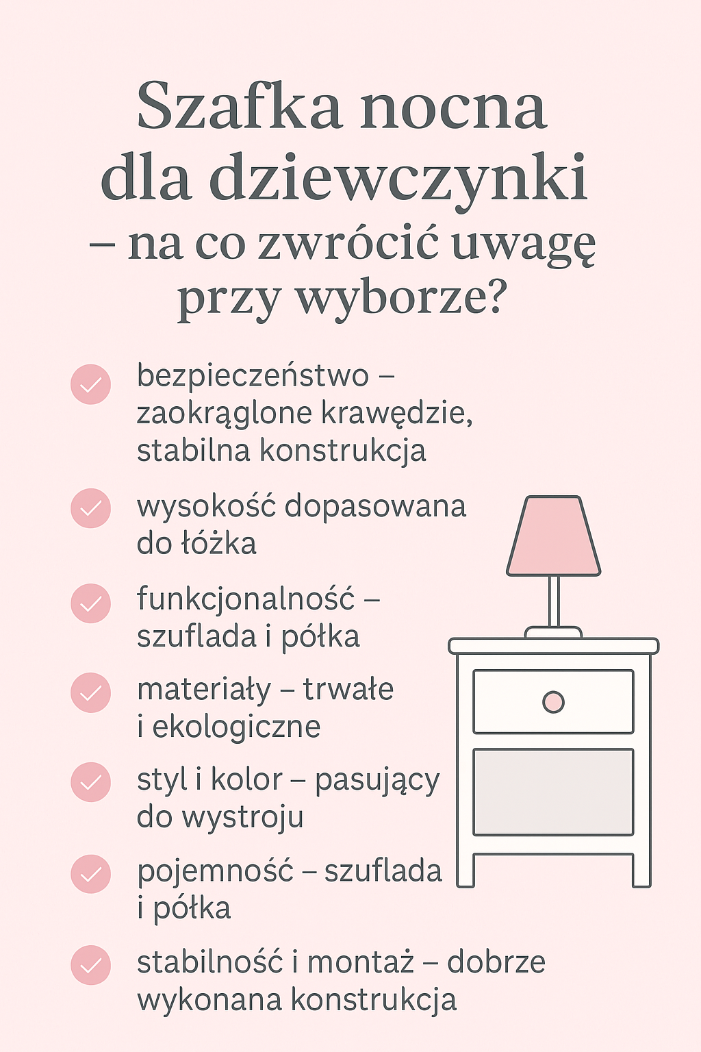 Wybór szafki nocnej dla dziewczynki to decyzja, która powinna łączyć bezpieczeństwo, funkcjonalność i estetykę. Dobrze dobrana szafka: